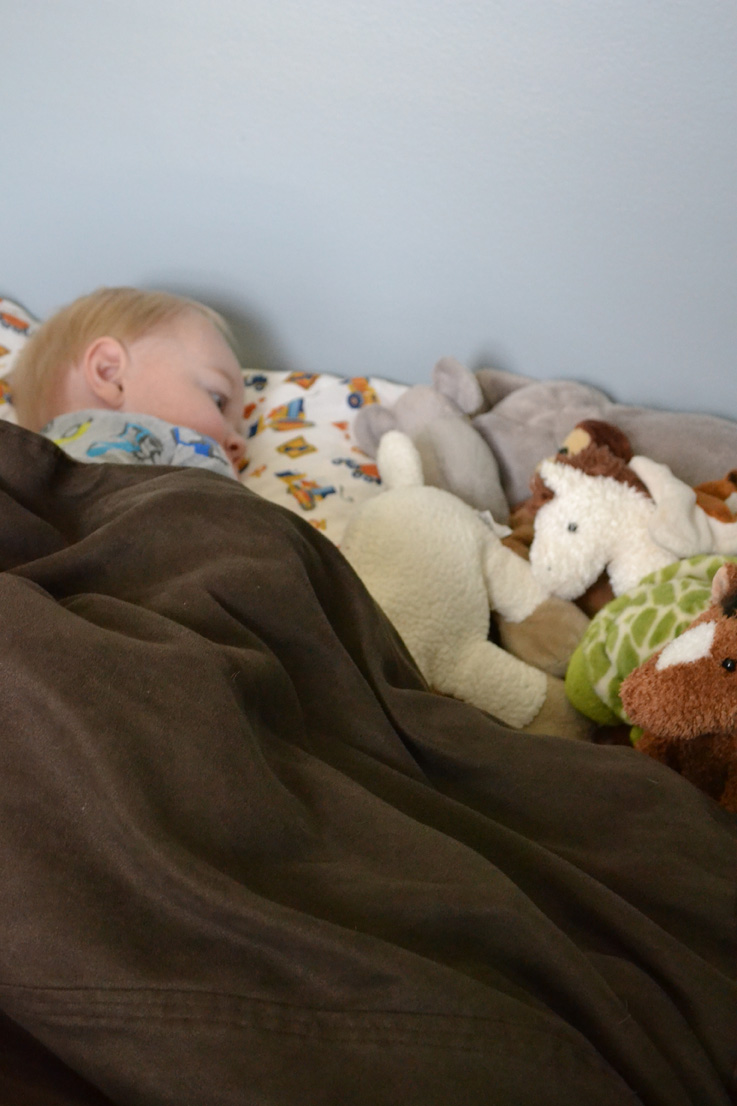 When we told him he’d be moving to his big boy bed that night, he did about the cutest thing he’s ever done. He personally chose each of the stuffed animals he wanted to bring to his new bed, carrying each one over from his crib and telling them that they would be in his new bed with him.