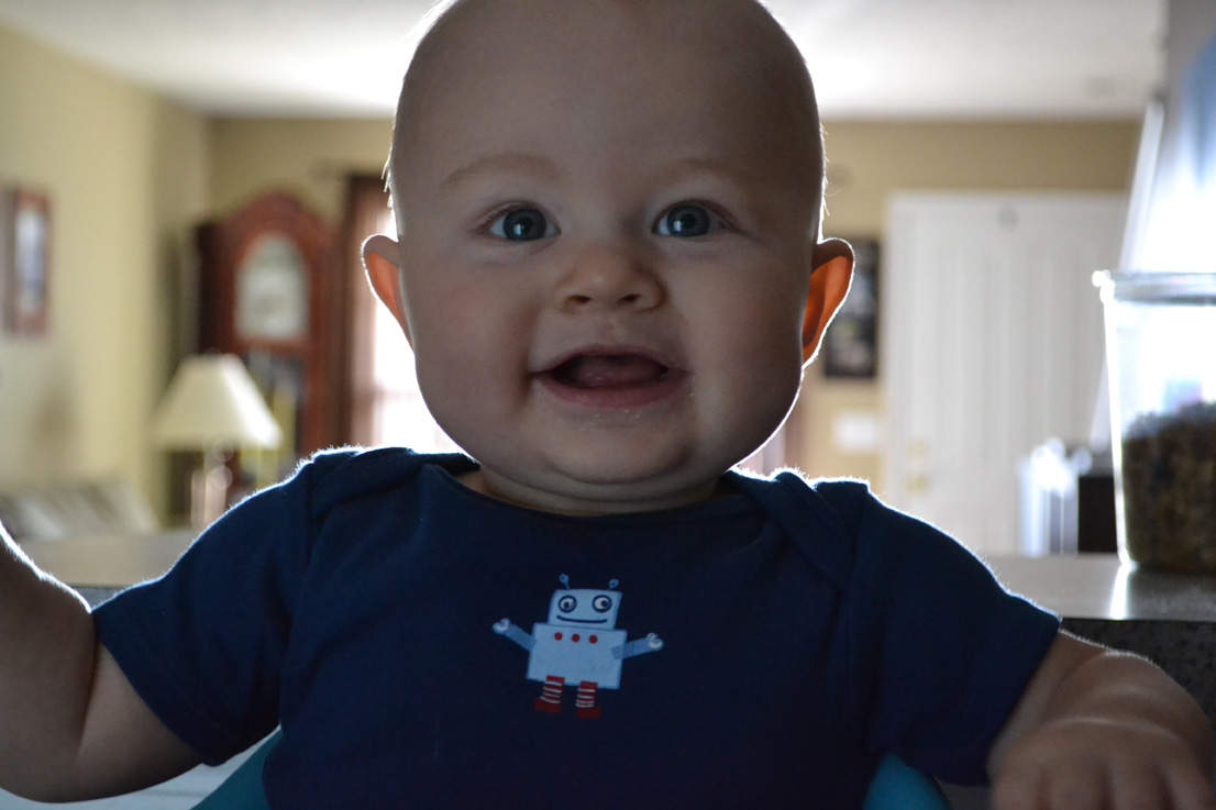 Once Eli turned a year old he was cleared by the doc to graduate to a forward facing car seat. It’s been wonderful, for him and for us. Now we don’t have to perform a contortionist event to feed him Cheerios while driving down the interstate at 70 miles per hour. Eli likes looking forward too, and his new forward facing seat makes him feel like he’s driving… so of course he makes his driving noise while we go down the road.